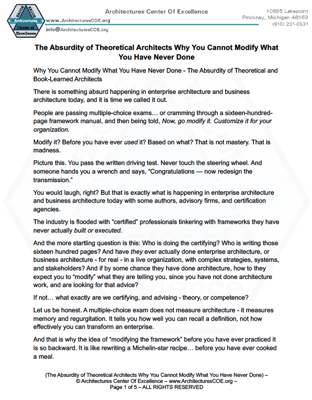 The Absurdity of Theoretical Architects Why You Cannot Modify What You Have Never Done